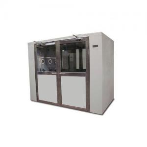風(fēng)/貨淋室是人/貨進(jìn)出潔凈室所必需的通道,并同時(shí)起到氣閘室密閉潔凈室的作用。為了減少由于人/貨進(jìn)出所帶來(lái)的大量塵埃粒子,經(jīng)高效過(guò)濾器過(guò)濾后的潔凈氣流由箱體兩側(cè)可旋轉(zhuǎn)噴嘴噴射至人/貨表面,有效而迅速清除塵埃粒子,清除后的塵埃粒子再由初、高效過(guò)濾器過(guò)濾后重新循環(huán)到風(fēng)淋區(qū)域內(nèi)。為了達(dá)到吹淋的最佳效果,風(fēng)/貨淋室設(shè)計(jì)的噴嘴出風(fēng)口風(fēng)速能達(dá)到20m/s以上,吹到人身上的風(fēng)速最低1 8m/s,出廠的初始風(fēng)淋時(shí)間設(shè)置為15秒。