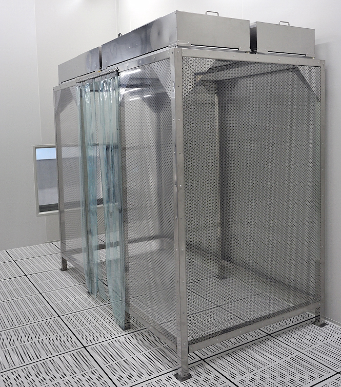 潔凈棚事實上是為方便,快速建立的一座簡易潔凈室??筛鶕?jù)使用需求設(shè)計制作,材料以工業(yè)鋁材(不銹鋼方通、噴塑方通)做框架,頂部采用FFU過濾送風(fēng),四周采用防靜電網(wǎng)格簾(透明亞克力板),頂部鋪蓋密封盲板,形成一個密封區(qū),內(nèi)部凈化級別可達(dá)到Class100-100000級。主要應(yīng)用在車間內(nèi)局部對潔凈度要求較高的區(qū)域,可以降低成本,提高產(chǎn)品的優(yōu)良率。安裝容易,施工期短,使用方便及遷移性佳為其主要特點(diǎn)。