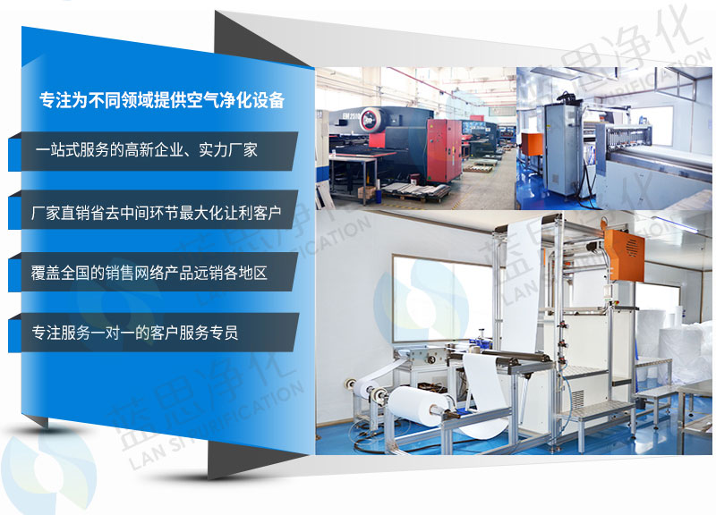 深圳市藍思凈化科技有限公司,致力于凈化行業(yè)十余年,是一家集空氣過濾器和凈化設(shè)備研發(fā),生產(chǎn)與銷售的高科技企業(yè),產(chǎn)品涵蓋各行業(yè)所需的空氣凈化設(shè)備及服務,包括對顆粒物(PM10,PM2.5,PM0.1)、病菌、氣態(tài)分子污染物(TVOC, 酸性,堿性氣體)等的評估和檢測,并提供全面有效的空氣凈化解決方案。公司從國外引進目前世界最先進的無隔板過濾器生產(chǎn)線及專有技術(shù)??砂碐B/T 14295-2008國家標準,GB/T 13554-2008國家標準及國家GMP規(guī)范要求為生物制藥。。。。。